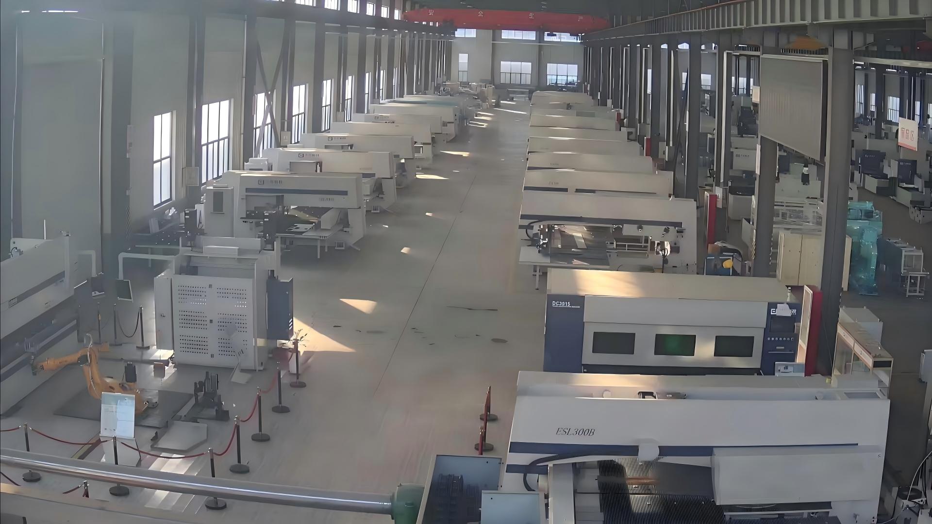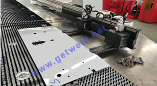 The turret press is equipped with manipulators to achieve auto. loading and discharging of outer sheet.